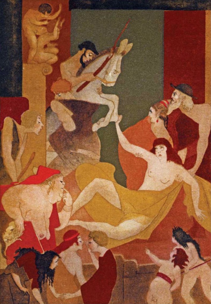 Yet the performance as a whole is not without serious narrative unpredictability and disruption. The passage merely describes the prelude to the main action of the performance, which is the copulation on stage between the donkey narrator and a woman accused of murder among many other crimes; the bestial act is part of her public humiliation before being eaten by wild beasts. Theatrical machines change the scene and display a luxurious bed “finely and bravely prepared, and covered with silk and other things necessary.” With great anxiety, the narrator describes the anticipated copulation as an action designed for maximum theatrical effect without, however, proposing that the scene is anything other than “reality.” This extravagant blurring of distinction between representation and reality arises out of the same impulse to treat reality astheater that established the appeal of chariot races and gladiatorial combats. The “Judgment of Paris” ballet then seems like a grotesque parody or travesty of glamorous ritual performance efforts to evoke the mythic spirit of Venus on behalf of the ecstasies of carnal desire.