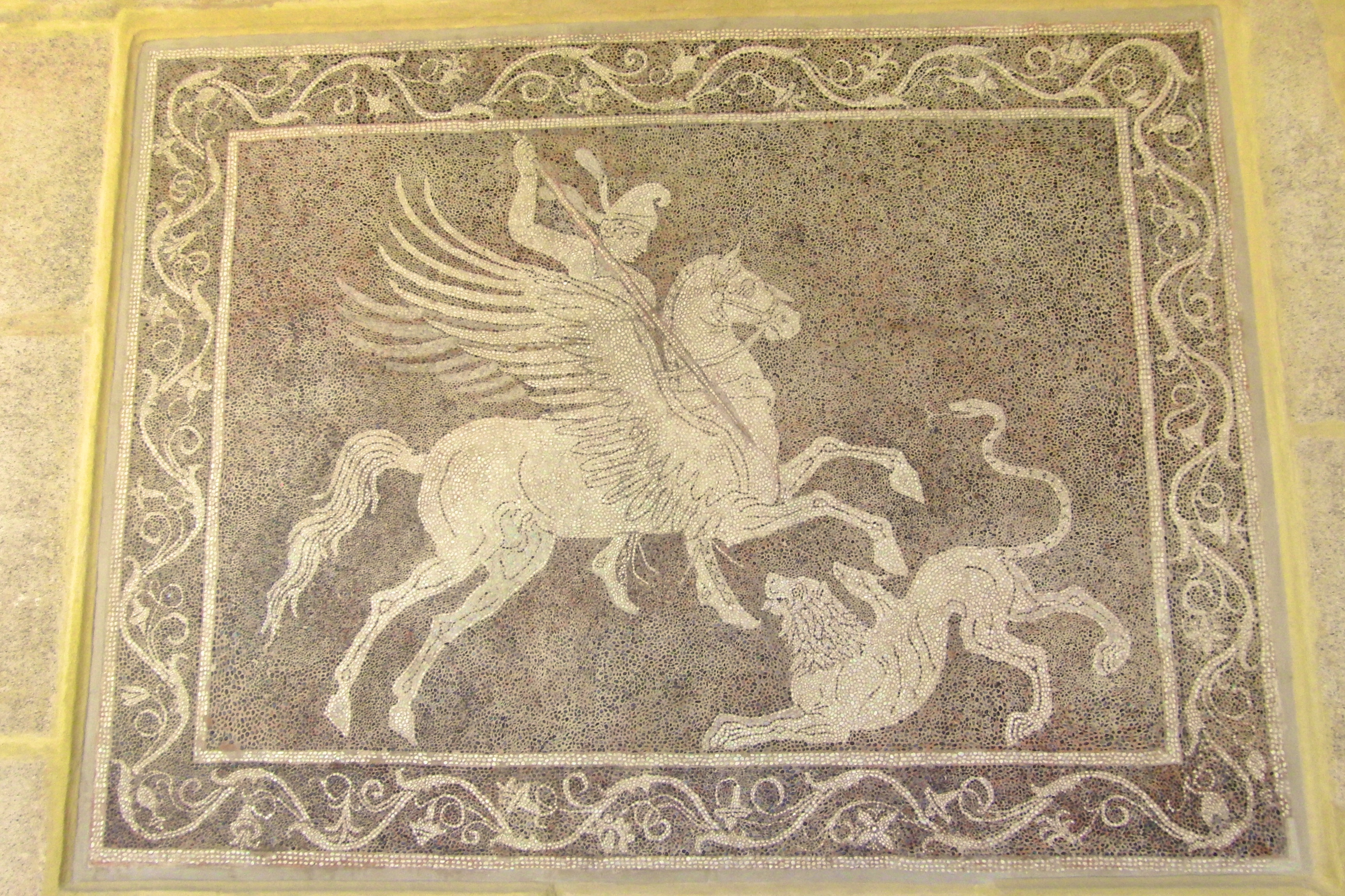 The evidence of the Oxyrhynchus papyri suggests that each interlude contained a different type of entertainment. However, in an afternoon offering up to 24 races, it would have been a very challenging task to present 24 distinct entertainments in one day, let alone from week to week and in competition with the entertainments presented by other factions. It could be that interlude entertainments rotated from one faction (pantomime) to another, which means that the whole circus program was under the control of hippodrome administrators rather than under the factions. Some kinds of interlude entertainments were easier for the audience to see in a large hippodrome than others, such as gazelle hunts and tightrope dancers, or the African funambulist from around 533 celebrated in item 101 of the Anthologia Latina (Kay 2008: 141-145). But even these acts are difficult to place in their hippodrome context. Gazelles chased by dogs around the track don’t seem particularly difficult for spectators throughout the stadium to enjoy, but what kinds of things could bears perform that most of the audience could see in the vast stadium? Perhaps they simply paraded around the track accompanied by dancers. Elephants appeared only occasionally: after the third century, when the elephant population of North Africa declined precipitously, the cost of securing and maintaining these creatures was too high for the state to provide a menagerie containing them. More likely was the use of equestrian acts to entertain hippodrome audiences, although the nature of these acts remains very obscure because the evidence of them is so frail. In mosaics of the third and fourth centuries, horses, horses and their riders, and riders on horses are recurrent themes, but the representation of equestrian stunts is extremely rare and mostly focused on the theme of nereids riding creatures that are half-horse and half-dolphin. It’s possible that in the third century and the first half of the fourth century pantomimes staged stunts like a parade of Amazons on horseback or Bellerophon riding a winged horse or invited the imperial cavalry to circle the track [Figure 75].