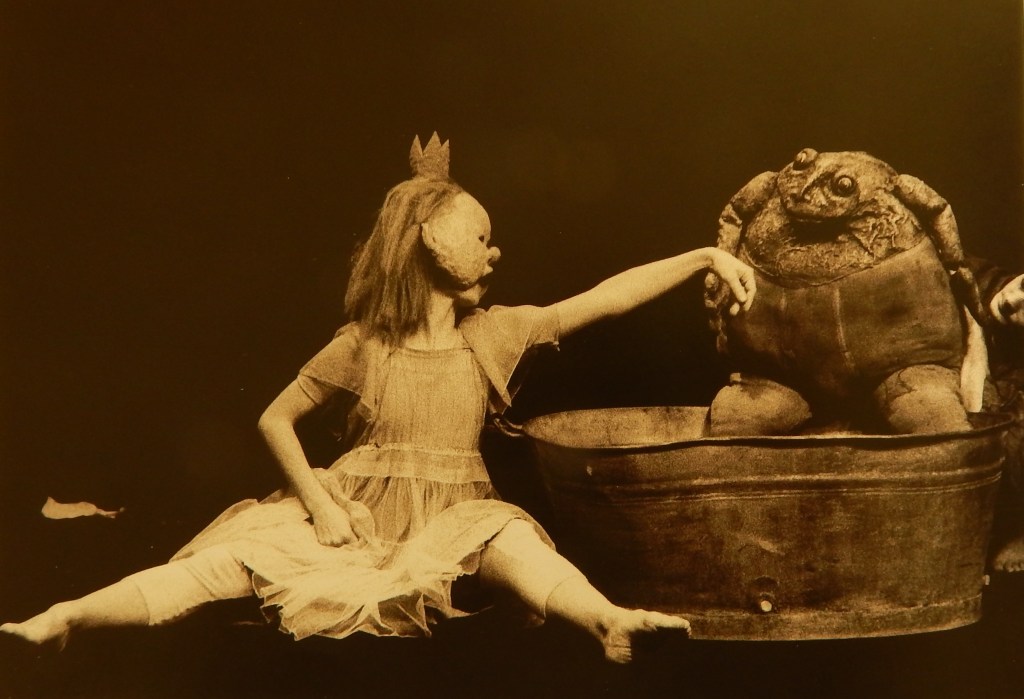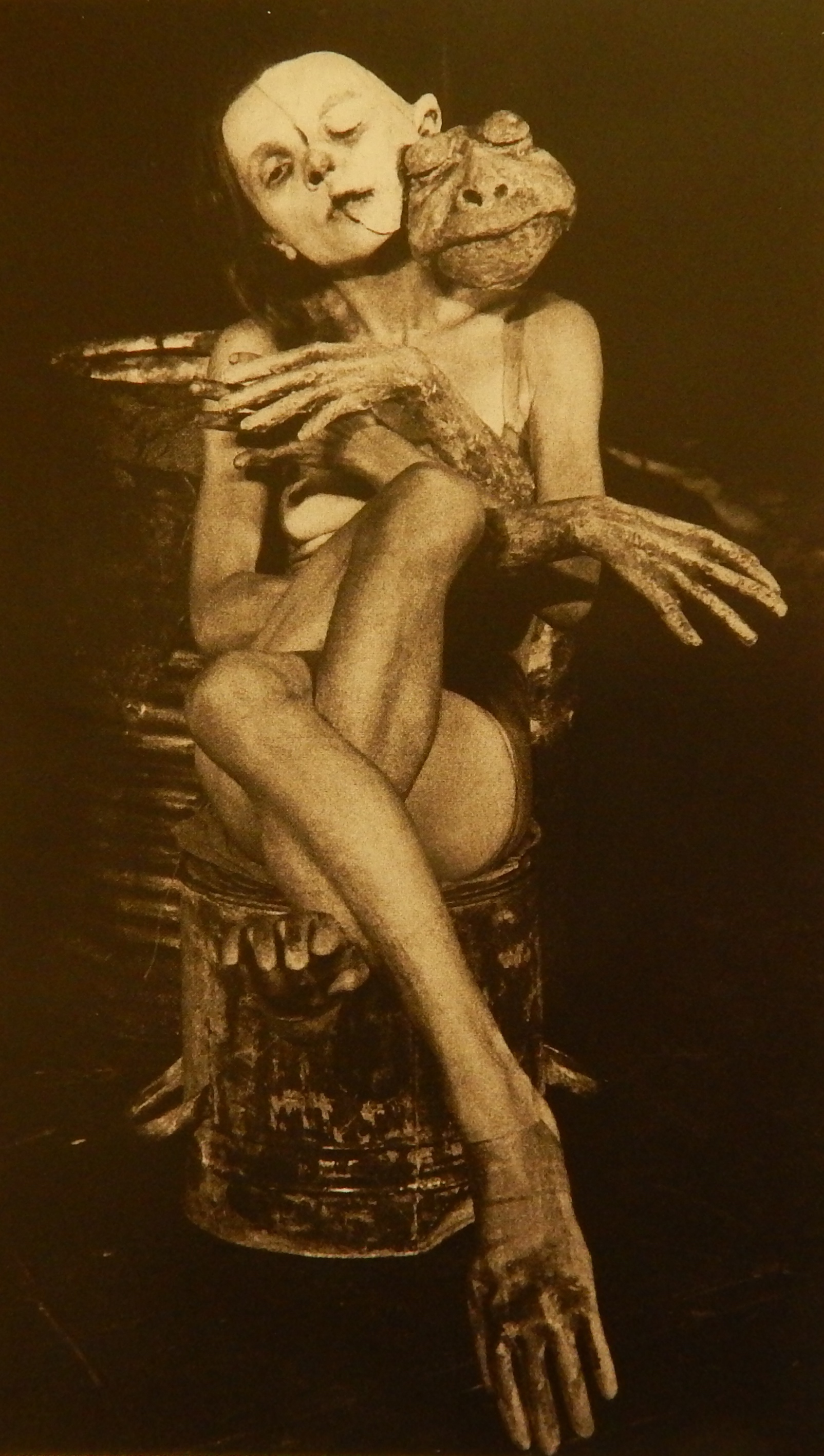 The problem with Schönbein’s aesthetic may be that while her puppets have evolved, as has her relationship to the puppets, her relation to pantomimic action has not evolved so effectively. The positions she assumes in manipulating the puppets, which are so often those of a woman struggling to bestow affection, love on a strange creature or even “monster” she has created, remain stable, so that Schönbein’s body functions like the center of gravity for the marionette figure in Kleist’s story. The puppets change, but the movements animating the puppets remain fairly constant. In a sense, the puppets determine the movements of the performer, who cannot seem to live as an artist without puppets attached to her body. Schönbein’s efforts to build puppets for other performers and direct their productions may be part of a strategy to detach puppets from her own body and affix them to the bodies of others. But this strategy does not seem to include so far an expansive or innovative construction of pantomimic action, which may be fundamental to understanding the “physical and psychological crisis” troubling the artist. At the same time, her later reliance on fairly tales to motivate identities and actions evokes a need to link puppetry and pantomime to a primordial childhood experience of the body’s frailty, its vulnerability to “metamorphosis,” to usurpation by “others,” and this obsession with preserving that childhood experience functions as a grotesquely poetic defense against time, against the aging of the body, against Death (cf. Gérard 2017).