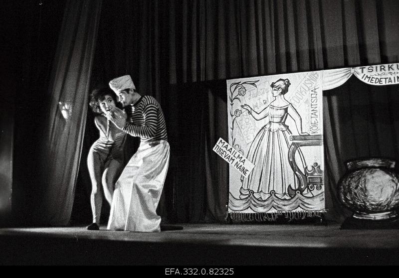 Yet another Estonian ventured into pantomime. For a brief period, 1980-1982, Maret Kristal (b. 1943) presented a single program of pantomimes with considerable success. In 1967, she graduated from the Moscow State Circus School, where pantomime was strictly a minor adjunct to clown performance. In Estonia, she worked as an “Estrade” (concert stage) performer with the Estonian Philharmonic from 1969 to 1972. She then returned to Moscow to study directing for the concert stage and mass spectacles at the State Institute for Theater Arts. Back in Estonia, however, her life became unsteady as she frequently changed jobs and seemed unable to develop the career for which she had studied. In 1976, she entered into a relationship with the writer and editor Kalle Kurg (b. 1942), and they occasionally shared an apartment in Tallinn that had two rooms entirely devoted to her costumes and rehearsal space, because she was unable to obtain space for them at a theater. Kurg had been married (1964-1967) to a ballet dancer, Elve Uustalu (b. 1942), and he had already read all the books he could obtain on the subject of pantomime. Nevertheless, by 1978 Kristal suffered an emotional crisis, believing that no one wanted her as a performing artist. In 1971, in the tower of the Kiek in de Kök in Tallinn, she produced her first evening-length solo performance, a Dance of Death inspired by the famous 1483 painting by Bernt Notke (1440-1509), but according to Kurg, the piece was not a pantomime, but a “movement production” containing pantomimic elements. Kristal wanted to perform pantomime, but was unsure how to construct ideas through physical action. Kurg, who was editor-in-chief of the prestigious literary journal Looming, knew many people in Estonian arts circles, and his manifold literary, journalistic, and graphic talents found application in various media, including television; he helped arrange for Kristal to receive a contract from the Vanemuine Theater in Tartu to produce a pantomime. She was, however, still uncertain how to proceed. Wanting to escape the stress that had befallen him as a result of his editorial duties, Kurg took a leave of absence and went to Tartu to help Kristal. In conversation with Heili Einasto, he explained that he devised three scenarios for Kristal, took on the responsibility of directing the performances, and designed the stage setting. Though he wrote theater criticism, Kurg had no extensive performance experience of pantomime, and he had not pursued any ideas about pantomime with Traks or anyone else in the Estonian theater world. From his perspective, pantomime was a problem for the Soviet authorities, who felt ballet had long ago superseded pantomime and who also believed that pantomime was a “Jewish” phenomenon, an art imported from abroad that was alien to Soviet ideology: “a libel was created that the Jews of the USSR are dealing with pantomime, and do not know what it is, while the right people still deal with the classical ballet in the spirit of the Russian ballet” (Kurg 2017). But the stage director Kaarel Ird (1909-1986), the Artistic Director of the Vanemuine Theater was, according to Kurg, ready “to flirt with this,” because, although he maintained close, compliant relations with Soviet cultural authorities to preserve funding for the Vanemuine, he also wanted the theater to develop a reputation for experimentation and innovation (Kurg 2017; Kurg 2020). Collaboration with Traks was apparently not an option for Kristal, who reportedly explained: “I cannot work with people who have studied under Traks. He breaks them. They are like machines and impossible to train” (Einasto 2002: 7). Kurg saw that Kristal possessed charisma on the stage; she could engage audience attention, yet she had difficulty establishing a strong motive for being on stage. Kurg also believed that Kristal did not know how to respond effectively to music: she couldn’t count, she couldn’t read music, and she didn’t allow music to lead her to imaginative forms of movement. She only knew a handful of movements, and it was difficult for her to move beyond this repertoire, so Kurg largely supervised the performance. The Vanemuine ballet dancers did not like working with her, because of their prejudices against pantomime and against improvisation—or more precisely, their prejudices against a person who had no ballet training and who wished to produce in their theater a form of performance that Soviet authorities regarded as detrimental to the cultural well being of the society. This seems like a case of pantomime nevertheless proceeding with almost no encouraging gestures, no sense of mastery of the medium, no powerful sense of purpose other than to move performance in a new (perhaps distinctly Estonian, un-Soviet) direction, and no feeling of confidence in constructing an entertainment for the public. Kurg, who had his own problems with the authorities over the editing of Looming, fashioned for her a program of three pieces, Mimeskid, or Mimesques, which premiered at the Vanemuine Theater in Tartu in November 1981, with music written especially for the program by Lepo Sumera (1950-2000) and Sven Grünberg (b. 1956).