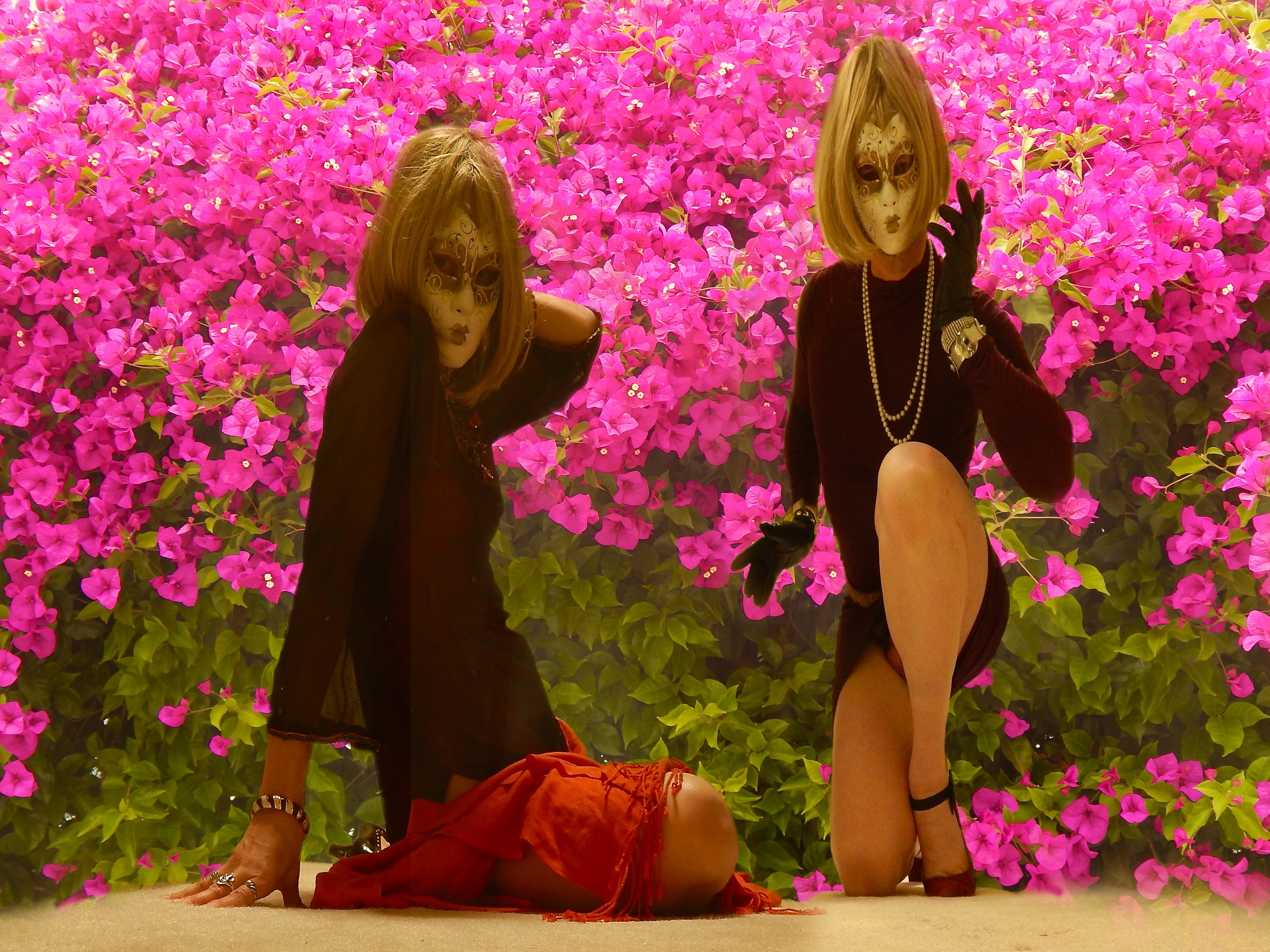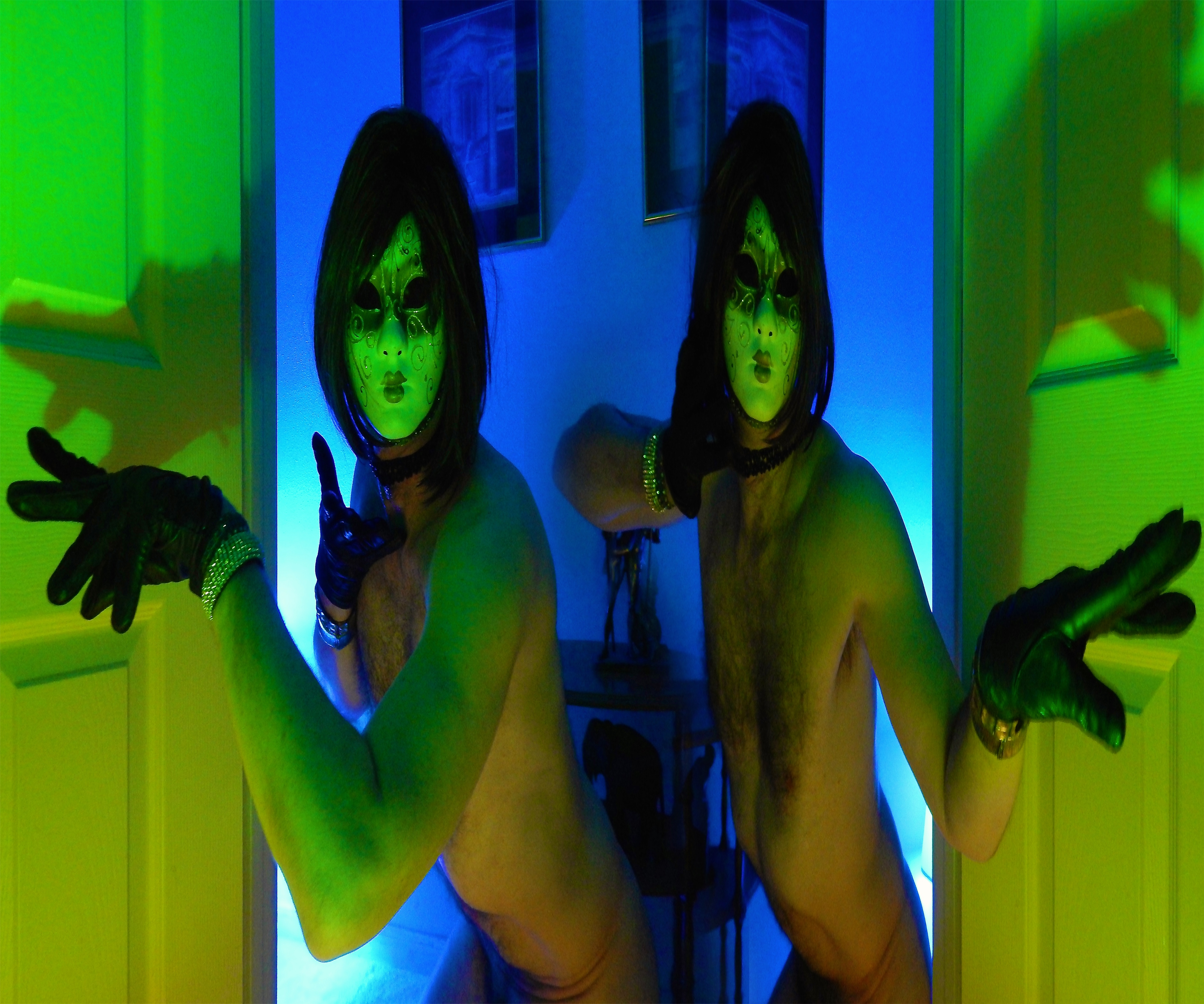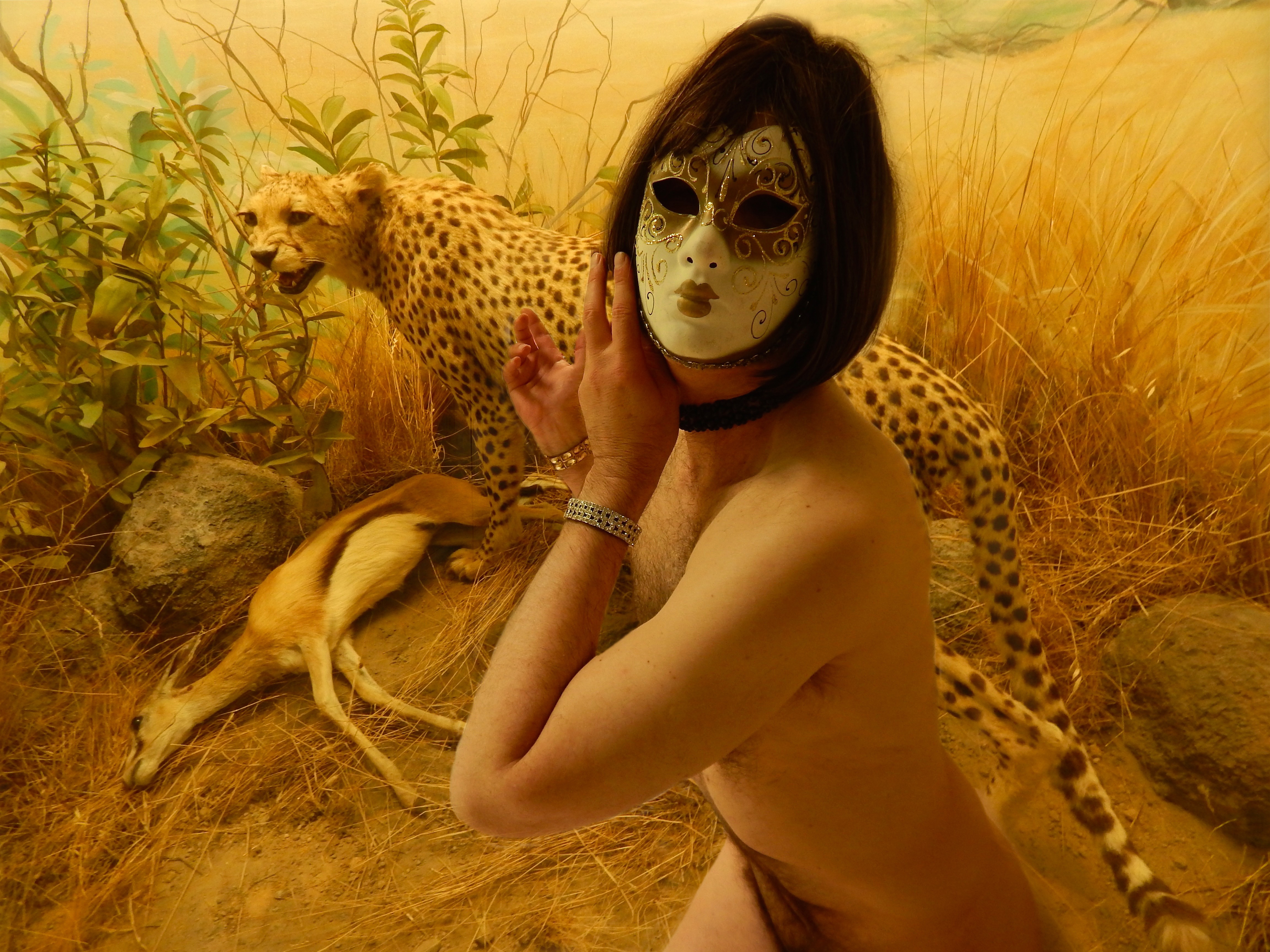 Many images in “The Masks of Femininity” are composites created using Photoshop. Composites allow figures photographed in one context to appear in an entirely different context. They allow one to reimagine the environments in which sexual identities may appear and to construct scenes that are otherwise difficult or even impossible to photograph. Compositing greatly expands the imaginative reach of photography. Some photographers, especially those of a photo-journalistic or even fine arts background, complain that compositing undermines the credibility of photography to document “reality”; compositing undermines “trust” in the photographic image. But no photograph is ever a completely trustworthy recording of a “reality” outside of the image; it is always made as a result of social-cultural pressures controlling what the photographer sees and how to see it. Compositing reminds us that the image is its own reality, that it is an illusion to believe that a photographic image ever completely or even mostly reveals a reality outside of itself and the pressures that caused it to exist.