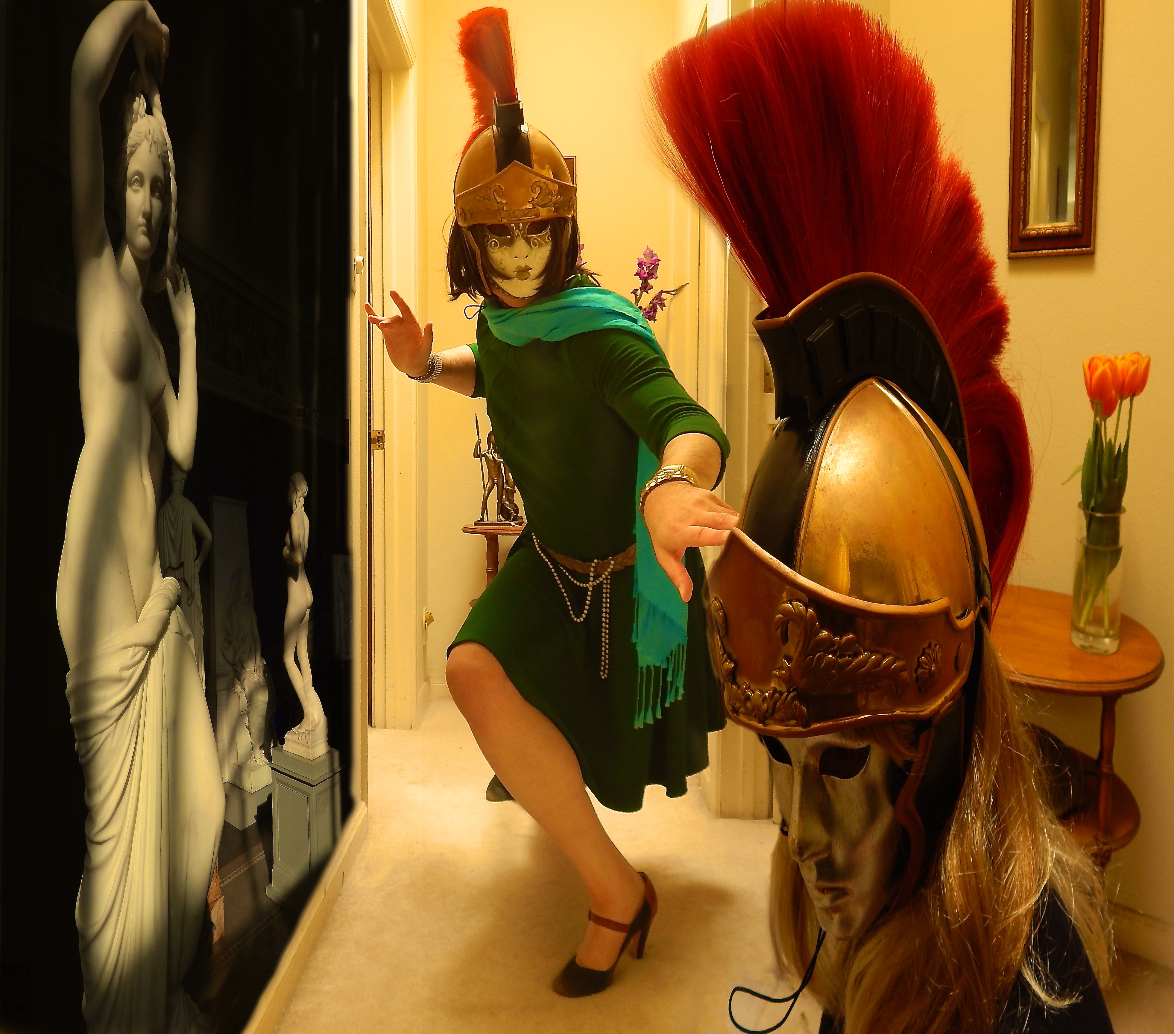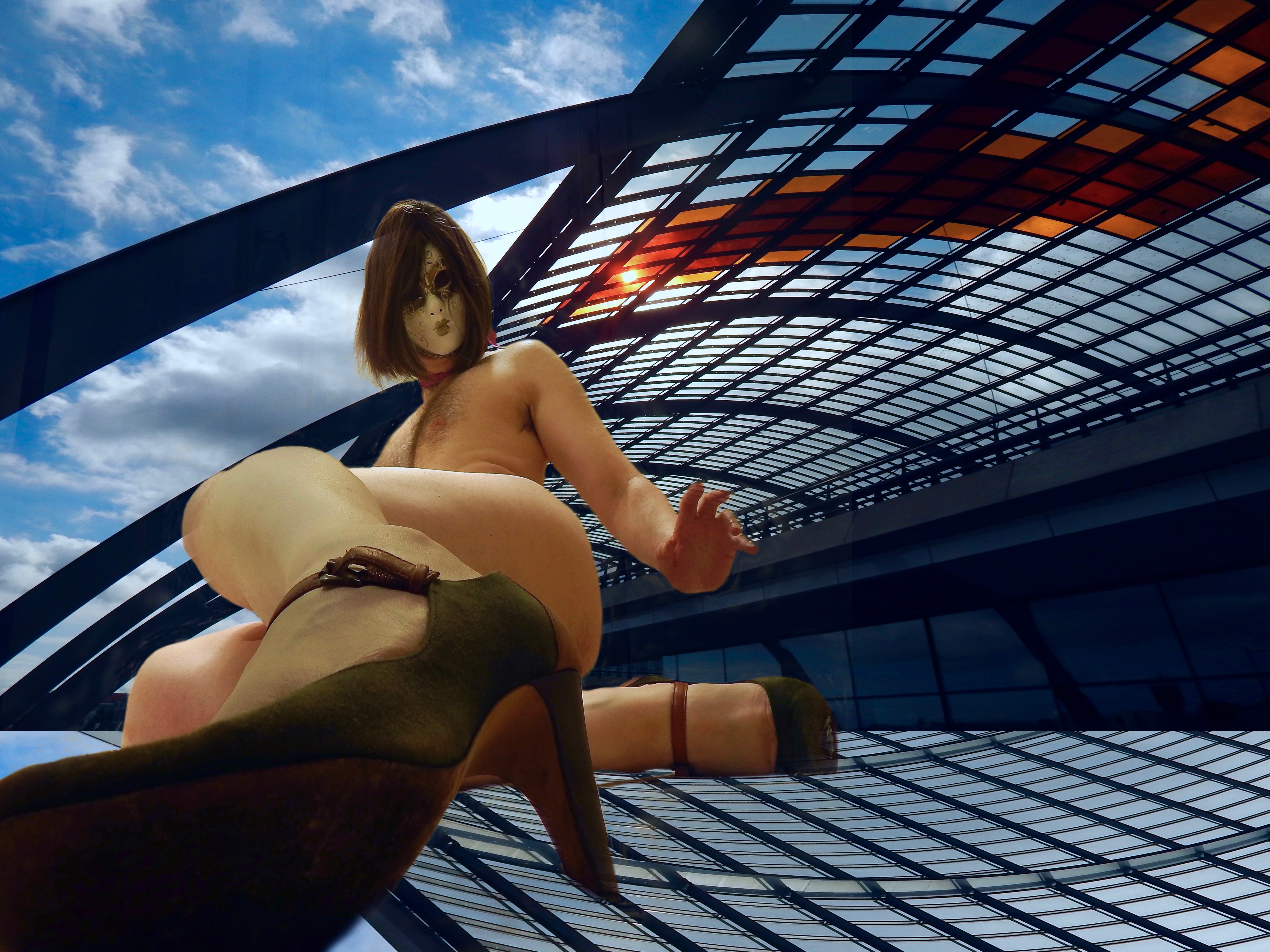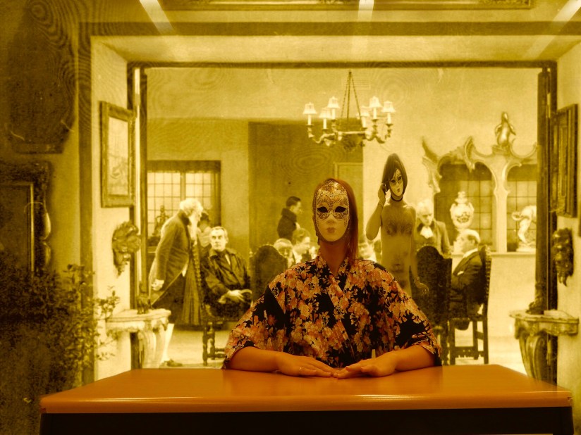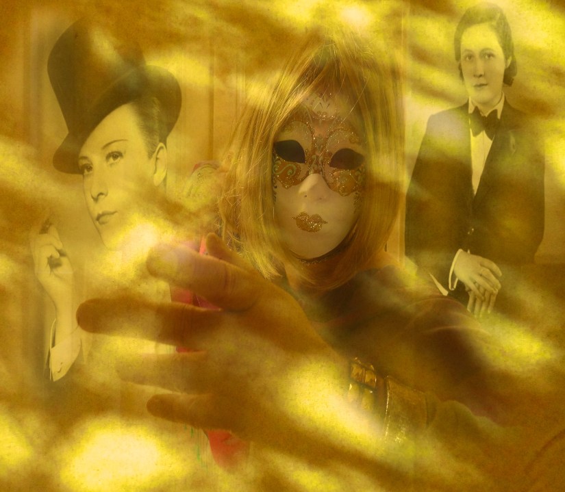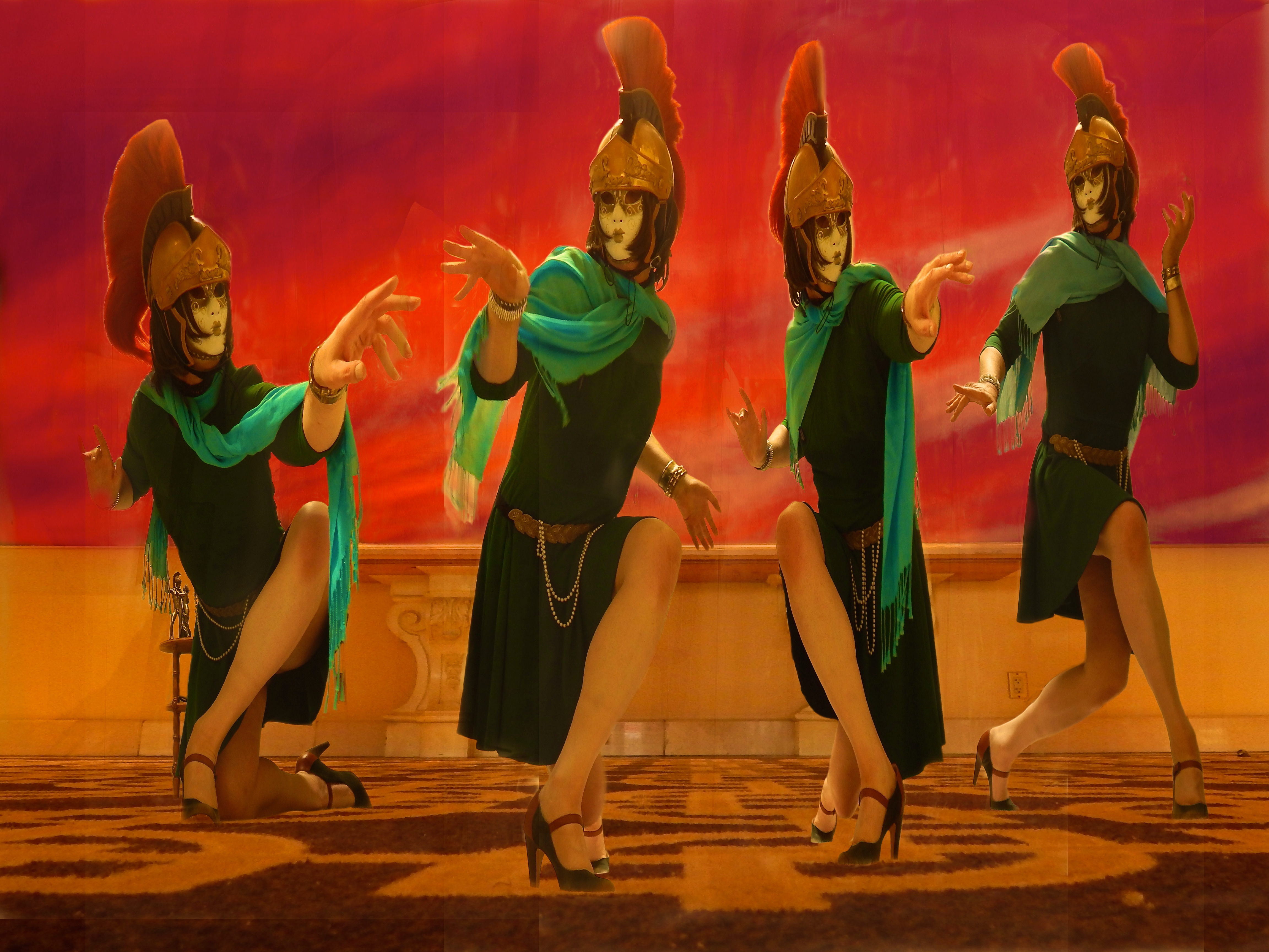 Many images in “The Masks of Femininity” are composites created using Photoshop. Composites allow figures photographed in one context to appear in an entirely different context. They allow one to reimagine the environments in which sexual identities may appear and to construct scenes that are otherwise difficult or even impossible to photograph. Compositing greatly expands the imaginative reach of photography. Some photographers, especially those of a photo-journalistic or even fine arts background, complain that compositing undermines the credibility of photography to document “reality”; compositing undermines “trust” in the photographic image. But no photograph is ever a completely trustworthy recording of a “reality” outside of the image; it is always made as a result of social-cultural pressures controlling what the photographer sees and how to see it. Compositing reminds us that the image is its own reality, that it is an illusion to believe that a photographic image ever completely or even mostly reveals a reality outside of itself and the pressures that caused it to exist.