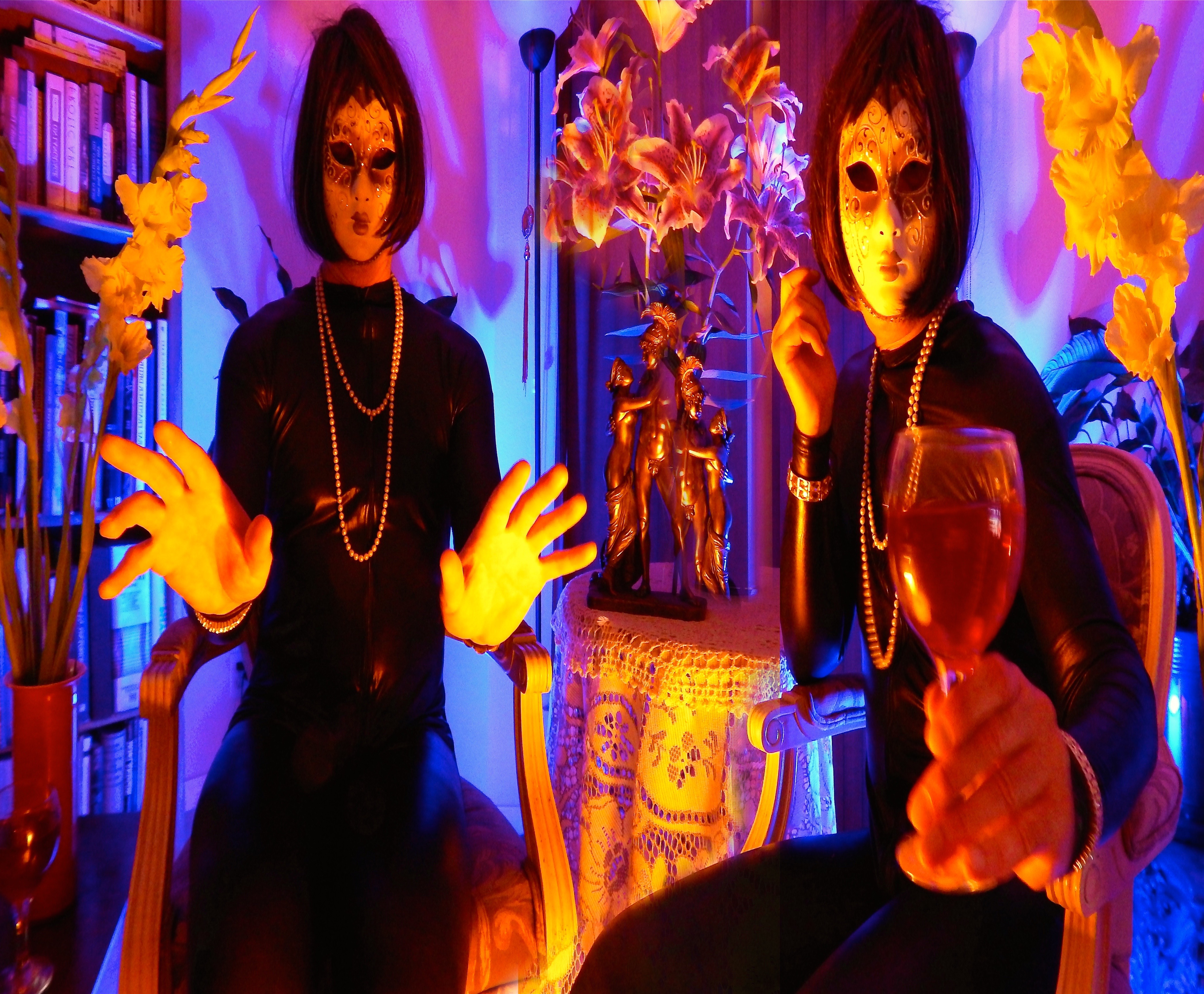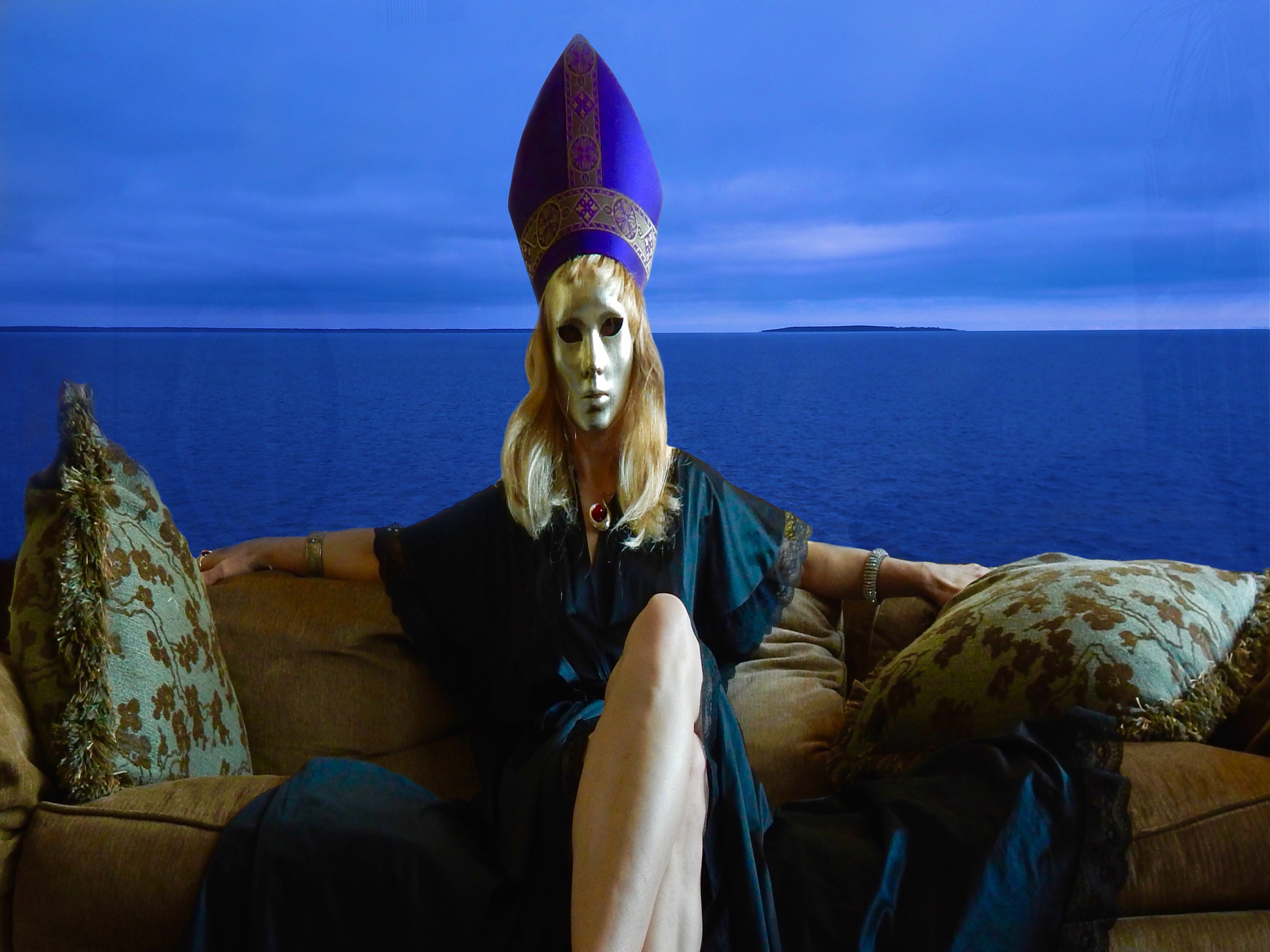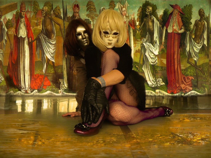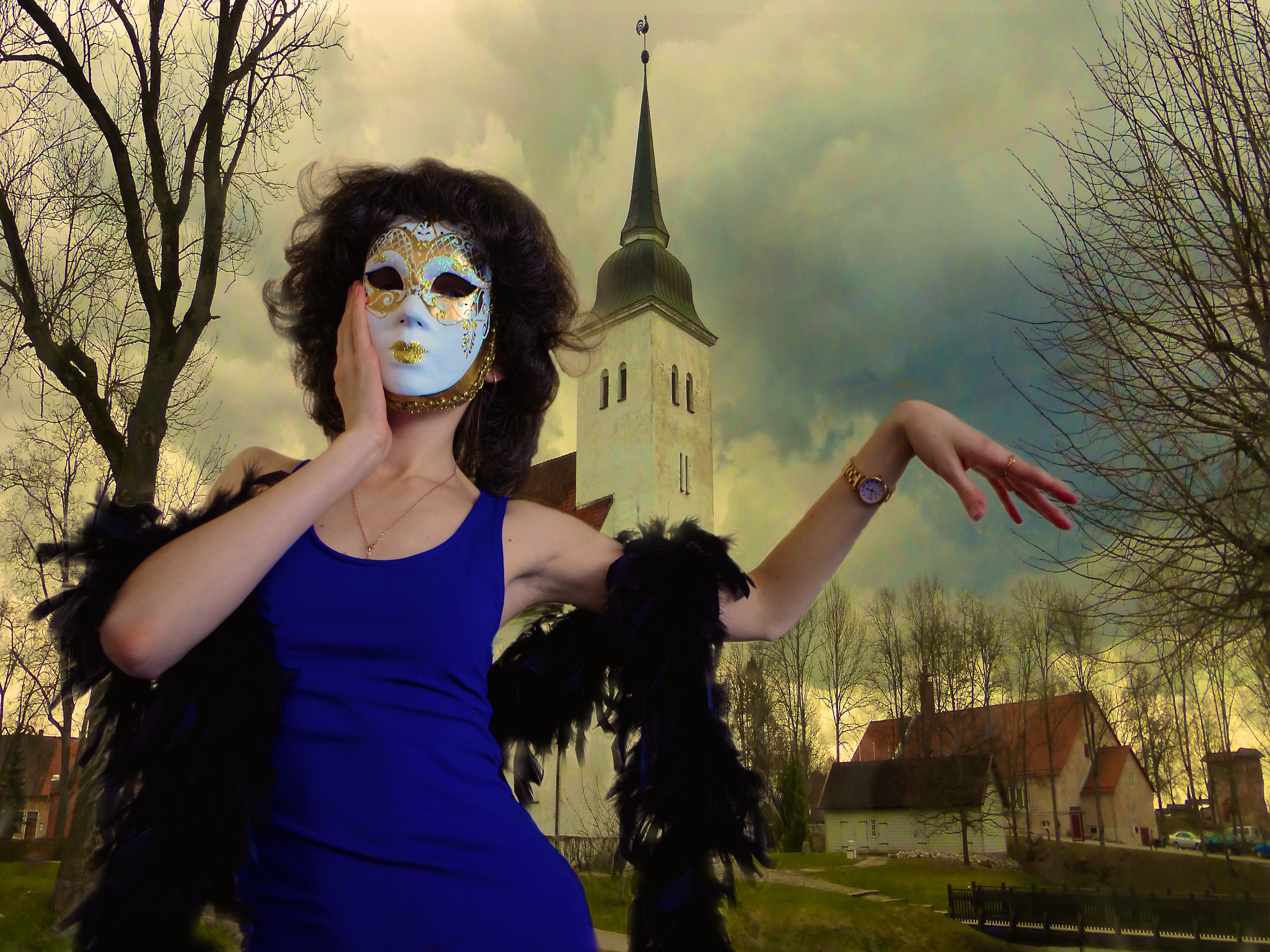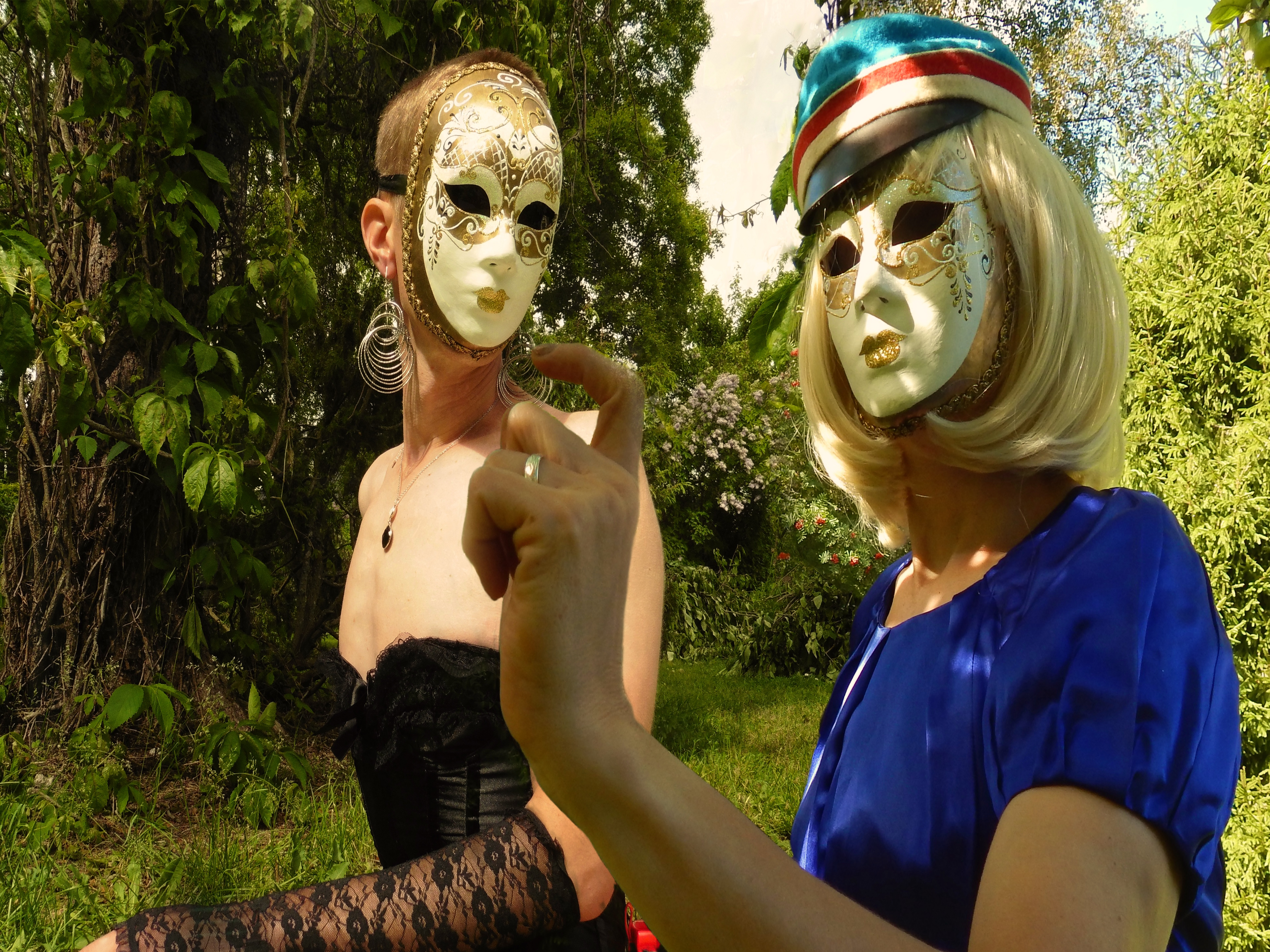 “The Masks of Femininity” is a photo project by photographers Heili Einasto and Karl Toepfer that describes the feminization of identities in relation to masks, costumes, poses, camera angles, settings, and lighting conditions. The project proposes that feminization is a fundamentally theatrical process. Femininity from this perspective thus manifests itself in relation to an image of physical transformation rather than in relation to observable qualities of women in reality. This means that femininity is not innate to bodies, but if that is the case, then it also means that it is very difficult and perhaps impossible to discern “authentic” or absolute femininity. Femininity is a “mask.” The project employs models from each sex. The models wear different masks and costumes; they are photographed wearing the masks and costumes in different poses and in different environments or “moods.” For many images, the goal is to show how a single variable, such as a prop or gesture or camera angle amplifies or diminishes feminization. Sometimes the aim of the photographers is to show how the slightest shift in a pose intensifies the aura of femininity for often complex reasons. In developing the project, the photographers have directed the models and fashioned the performance environment according to conventional signifiers of femininity (e.g., dresses, jewelry, long hair, high-heeled shoes, “voluptuous” poses), but the dominant signifier is the mask. It is the mask that calls attention to the conventions and releases them from their “natural” placement within consciousness and establishes their theatrical strangeness. On some occasions, the photographers employ a silver mask of uncertain sexual identity, and this mask produces a unique layer of ambiguity in the image that renders the conventional signifiers of femininity even more mysterious. The photographers sometimes also incorporate signifiers of hyper-masculinity into the images, such as a bishop’s mitre or military hats, to show how such signifiers actually intensify the feminization of the body. In some cases, it is difficult to discern the difference between male and female bodies; in other cases, where the viewer can identify the model as male, the image works to redefine masculinity in a positive way—that is, masculinity is as much about playing with sexual identity as it is about stabilizing sexual identity. But in this regard, “The Masks of Femininity” is not about drag performance; it is not about male appropriation of femininity or drag’s enthusiasm for the exaggeration or distortion of feminine signifiers. Rather, feminization is about the pleasure of intensifying the sexual ambiguity of bodies and identities. The larger goal of the project, then, is to show how a specific, theatrical process of feminization in image-making leads to heightened gender ambiguity, and this ambiguity is the foundation of greater condition of emotional and cognitive freedom. However, this project links “feminization” to the selection of masks that make bodies look younger than their “real” faces, for the “real” face so often masks an “other,” younger identity within the body.