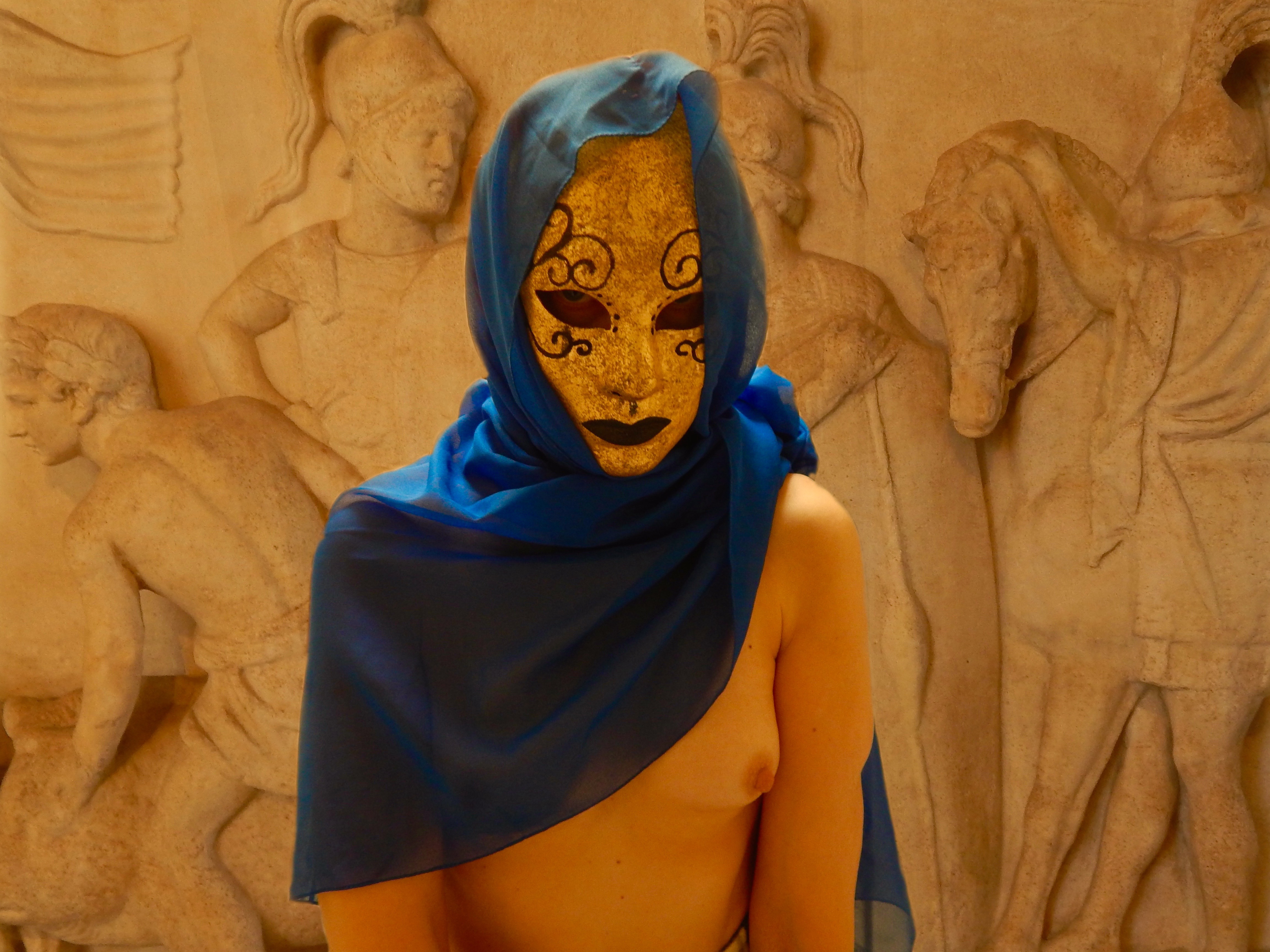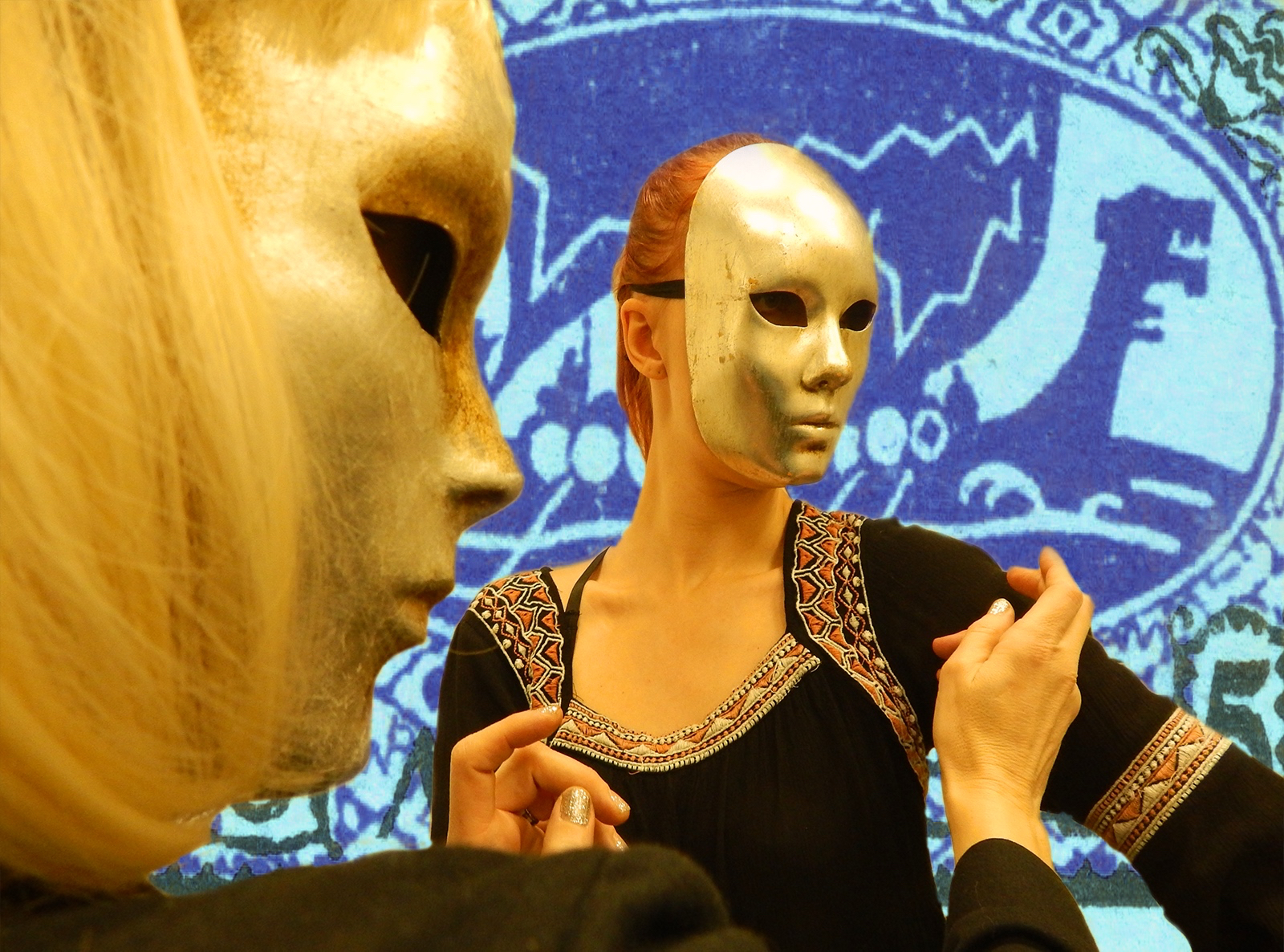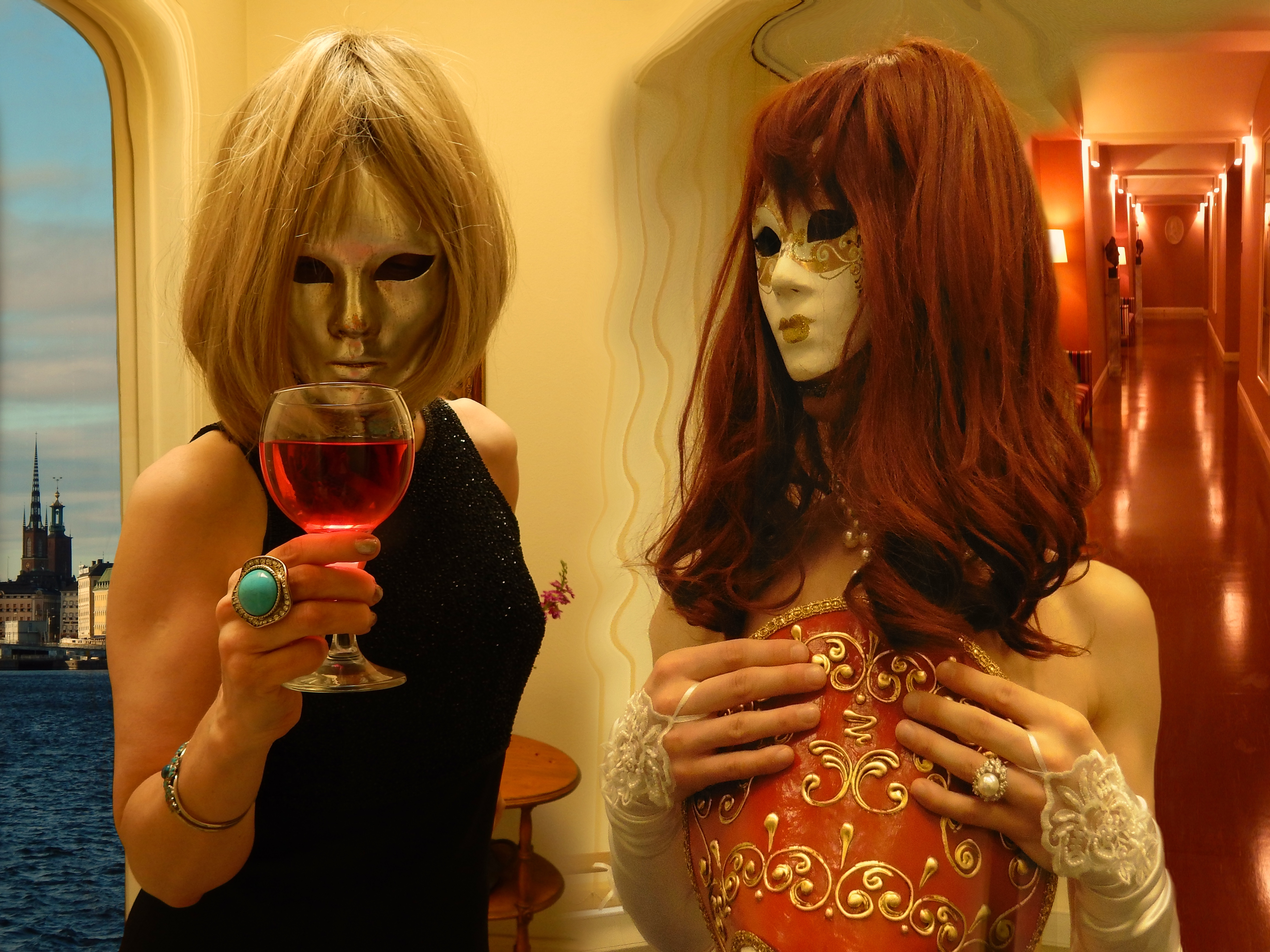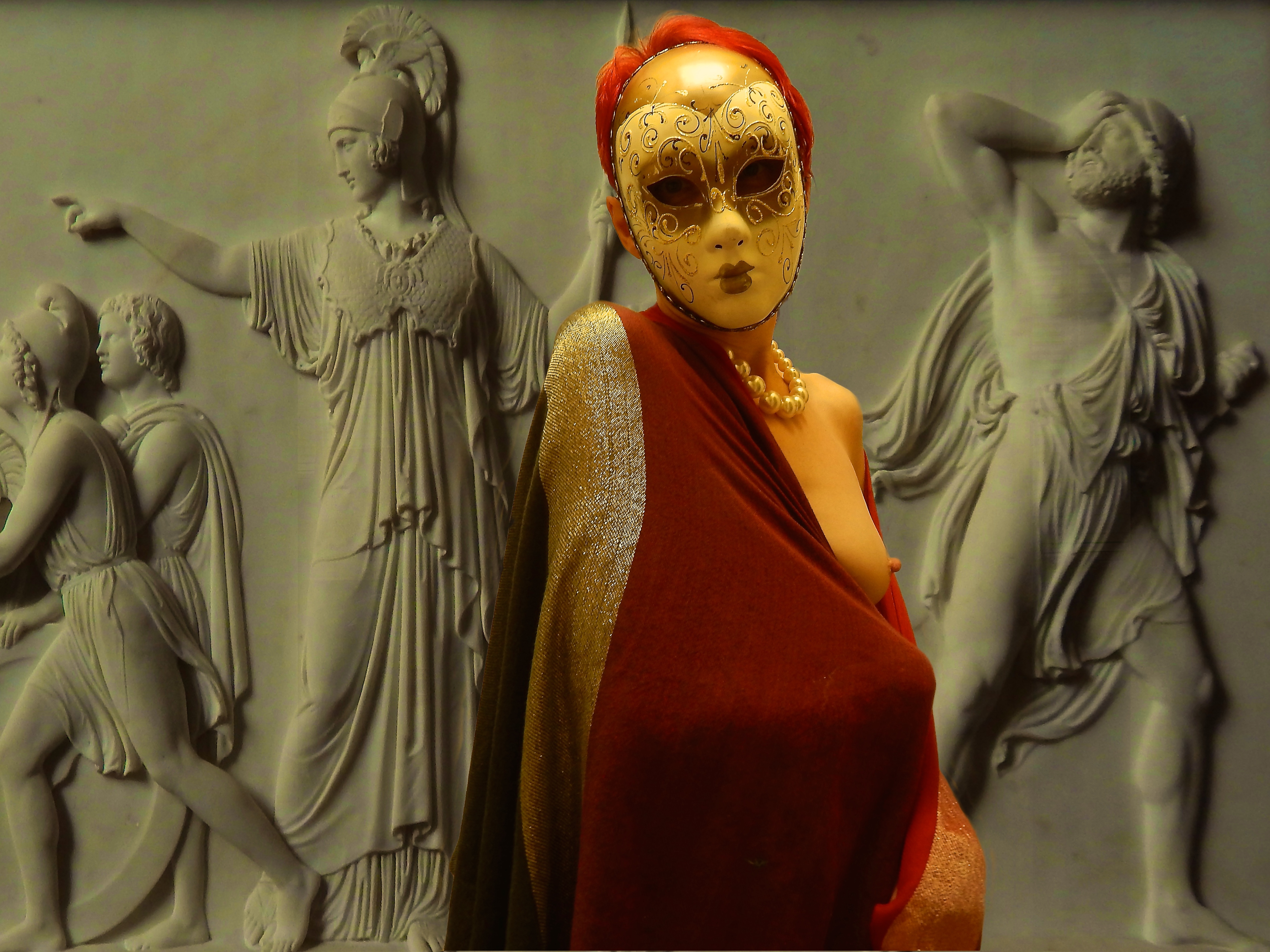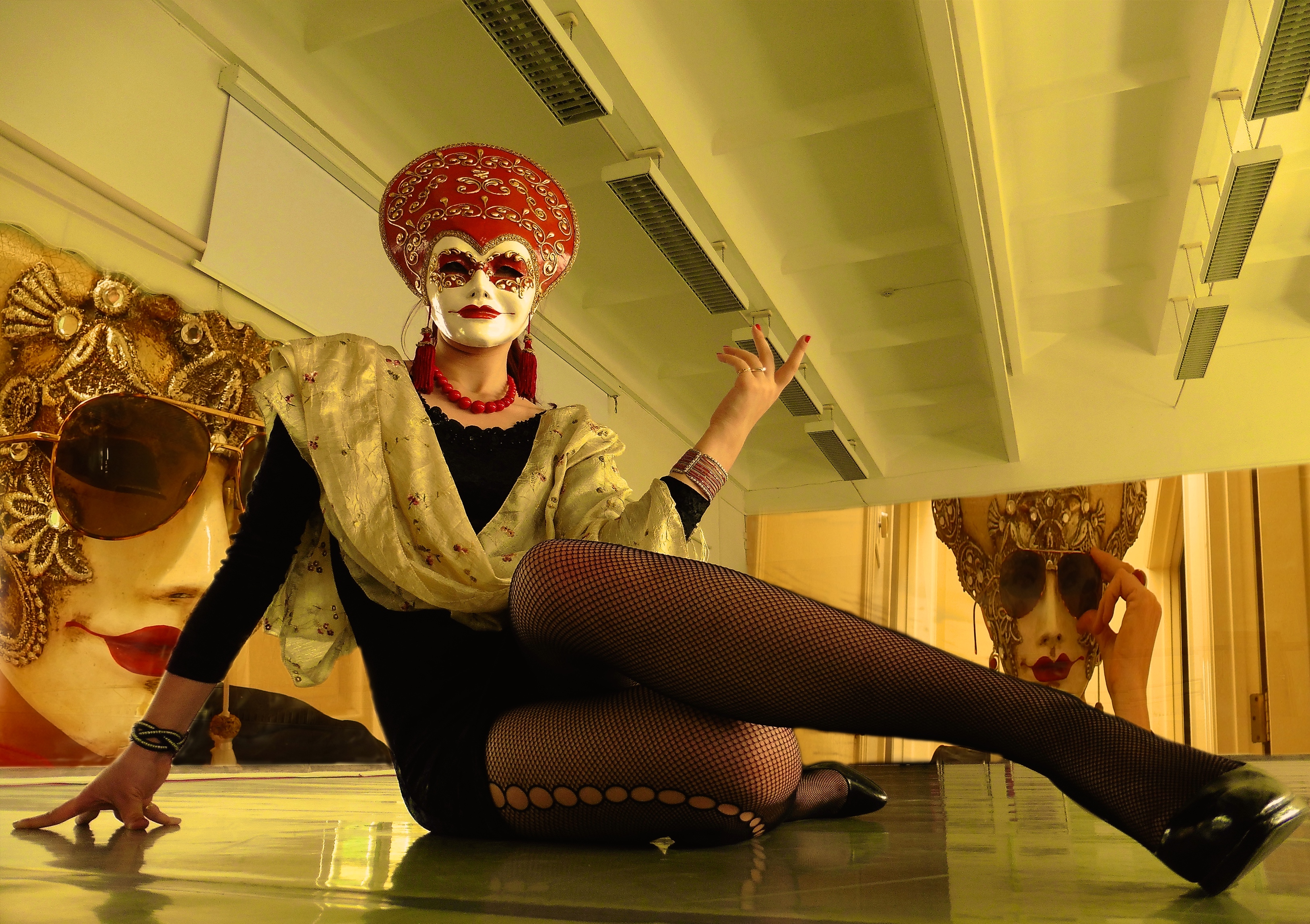 “The Masks of Femininity” is a photo project by photographers Heili Einasto and Karl Toepfer that describes the feminization of identities in relation to masks, costumes, poses, camera angles, settings, and lighting conditions. The project proposes that feminization is a fundamentally theatrical process. Femininity from this perspective thus manifests itself in relation to an image of physical transformation rather than in relation to observable qualities of women in reality. This means that femininity is not innate to bodies, but if that is the case, then it also means that it is very difficult and perhaps impossible to discern “authentic” or absolute femininity. Femininity is a “mask.” The project employs models from each sex. The models wear different masks and costumes; they are photographed wearing the masks and costumes in different poses and in different environments or “moods.” For many images, the goal is to show how a single variable, such as a prop or gesture or camera angle amplifies or diminishes feminization. Sometimes the aim of the photographers is to show how the slightest shift in a pose intensifies the aura of femininity for often complex reasons. In developing the project, the photographers have directed the models and fashioned the performance environment according to conventional signifiers of femininity (e.g., dresses, jewelry, long hair, high-heeled shoes, “voluptuous” poses), but the dominant signifier is the mask. It is the mask that calls attention to the conventions and releases them from their “natural” placement within consciousness and establishes their theatrical strangeness. On some occasions, the photographers employ a silver mask of uncertain sexual identity, and this mask produces a unique layer of ambiguity in the image that renders the conventional signifiers of femininity even more mysterious. The photographers sometimes also incorporate signifiers of hyper-masculinity into the images, such as a bishop’s mitre or military hats, to show how such signifiers actually intensify the feminization of the body. In some cases, it is difficult to discern the difference between male and female bodies; in other cases, where the viewer can identify the model as male, the image works to redefine masculinity in a positive way—that is, masculinity is as much about playing with sexual identity as it is about stabilizing sexual identity. But in this regard, “The Masks of Femininity” is not about drag performance; it is not about male appropriation of femininity or drag’s enthusiasm for the exaggeration or distortion of feminine signifiers. Rather, feminization is about the pleasure of intensifying the sexual ambiguity of bodies and identities. The larger goal of the project, then, is to show how a specific, theatrical process of feminization in image-making leads to heightened gender ambiguity, and this ambiguity is the foundation of greater condition of emotional and cognitive freedom. However, this project links “feminization” to the selection of masks that make bodies look younger than their “real” faces, for the “real” face so often masks an “other,” younger identity within the body.