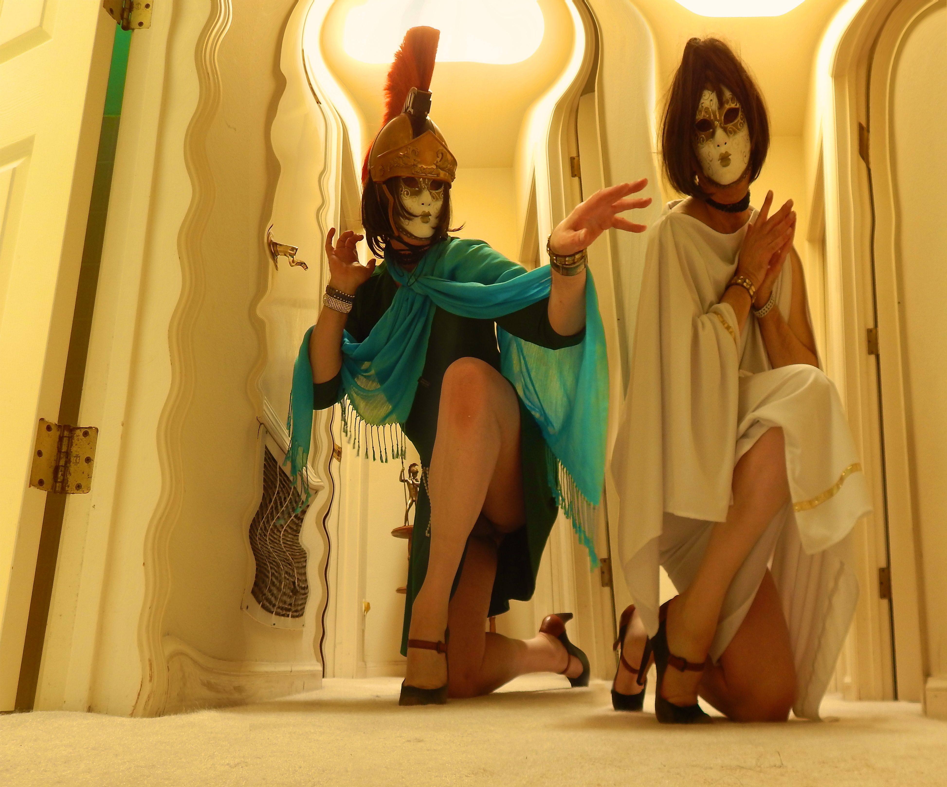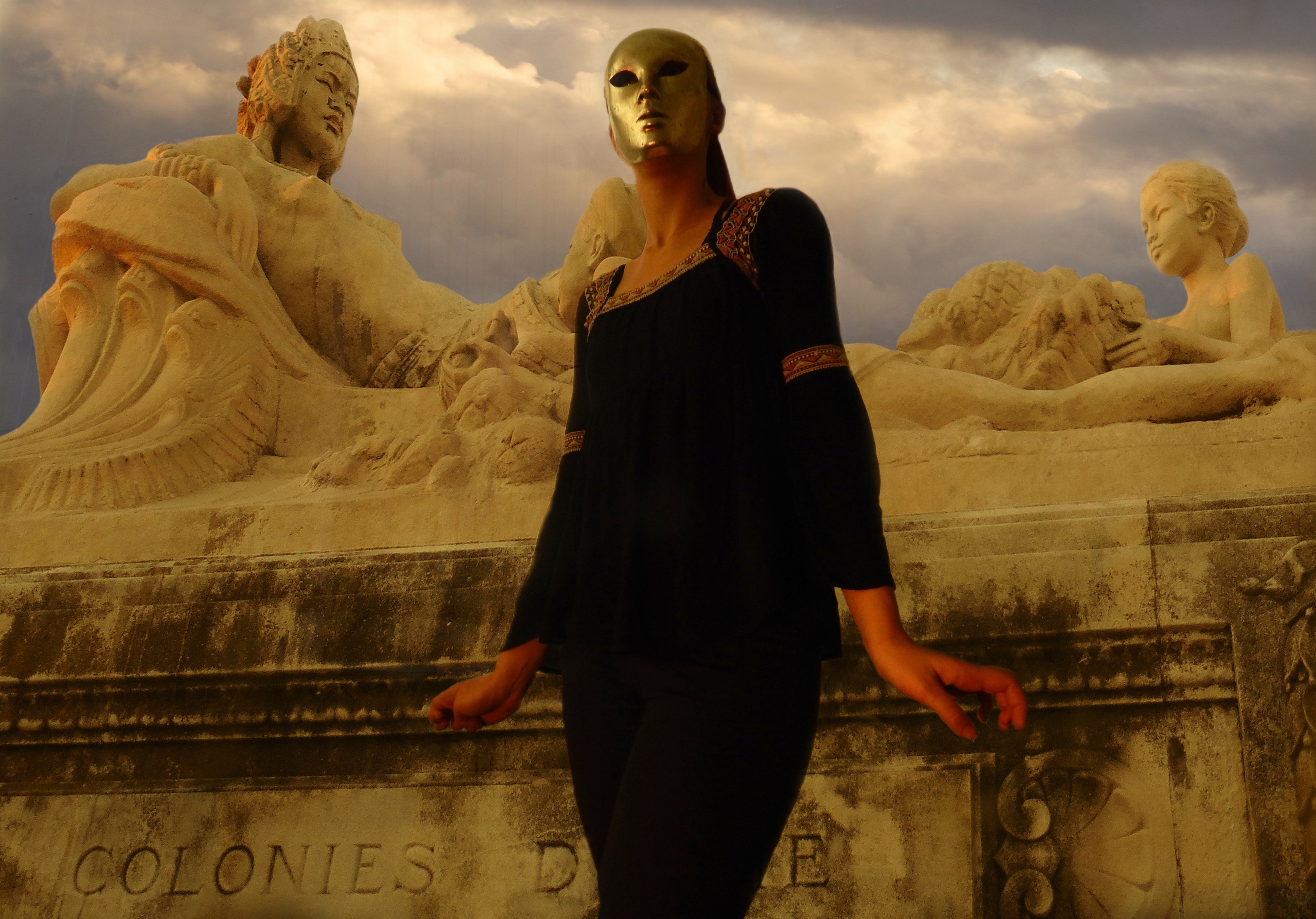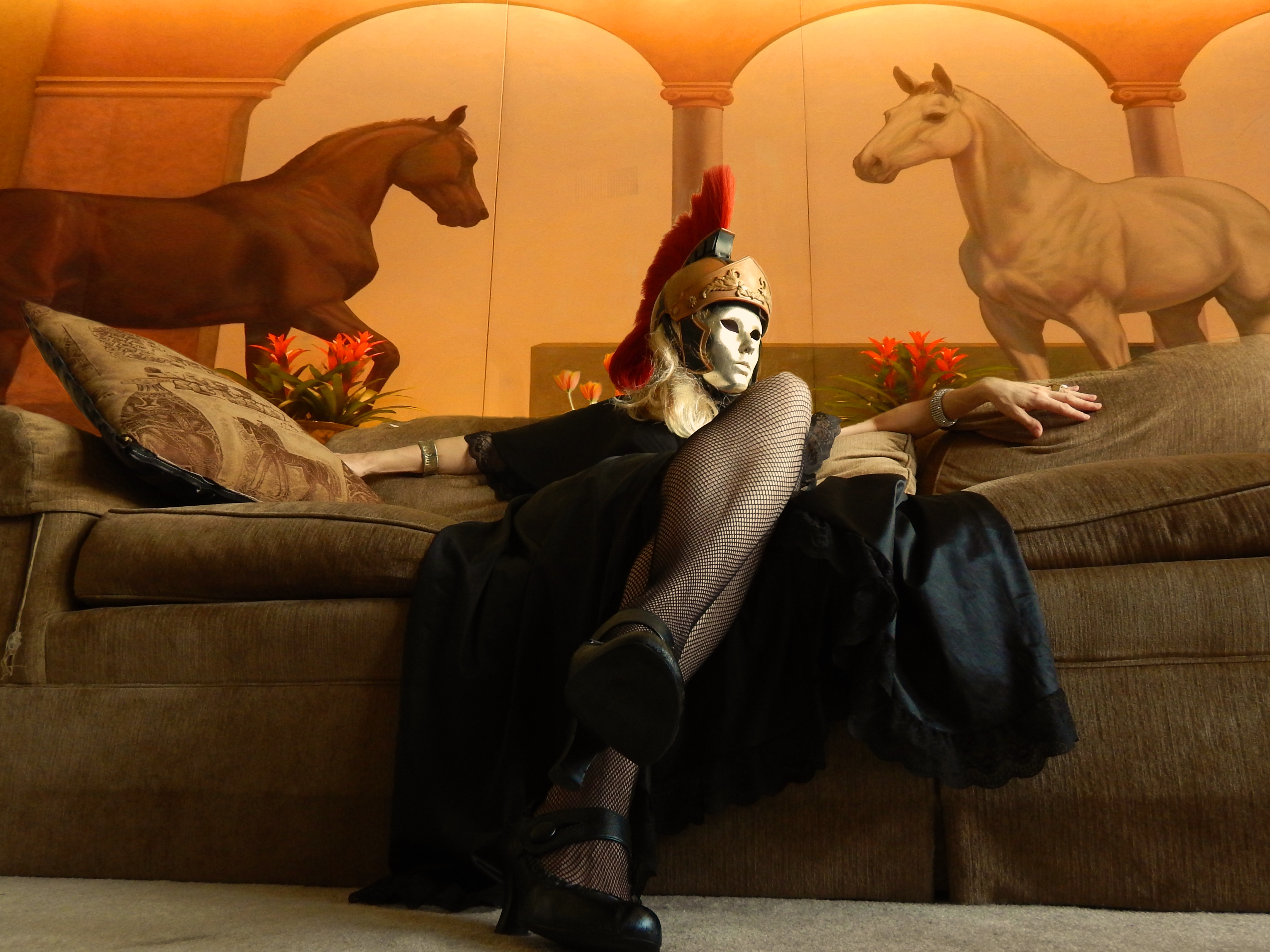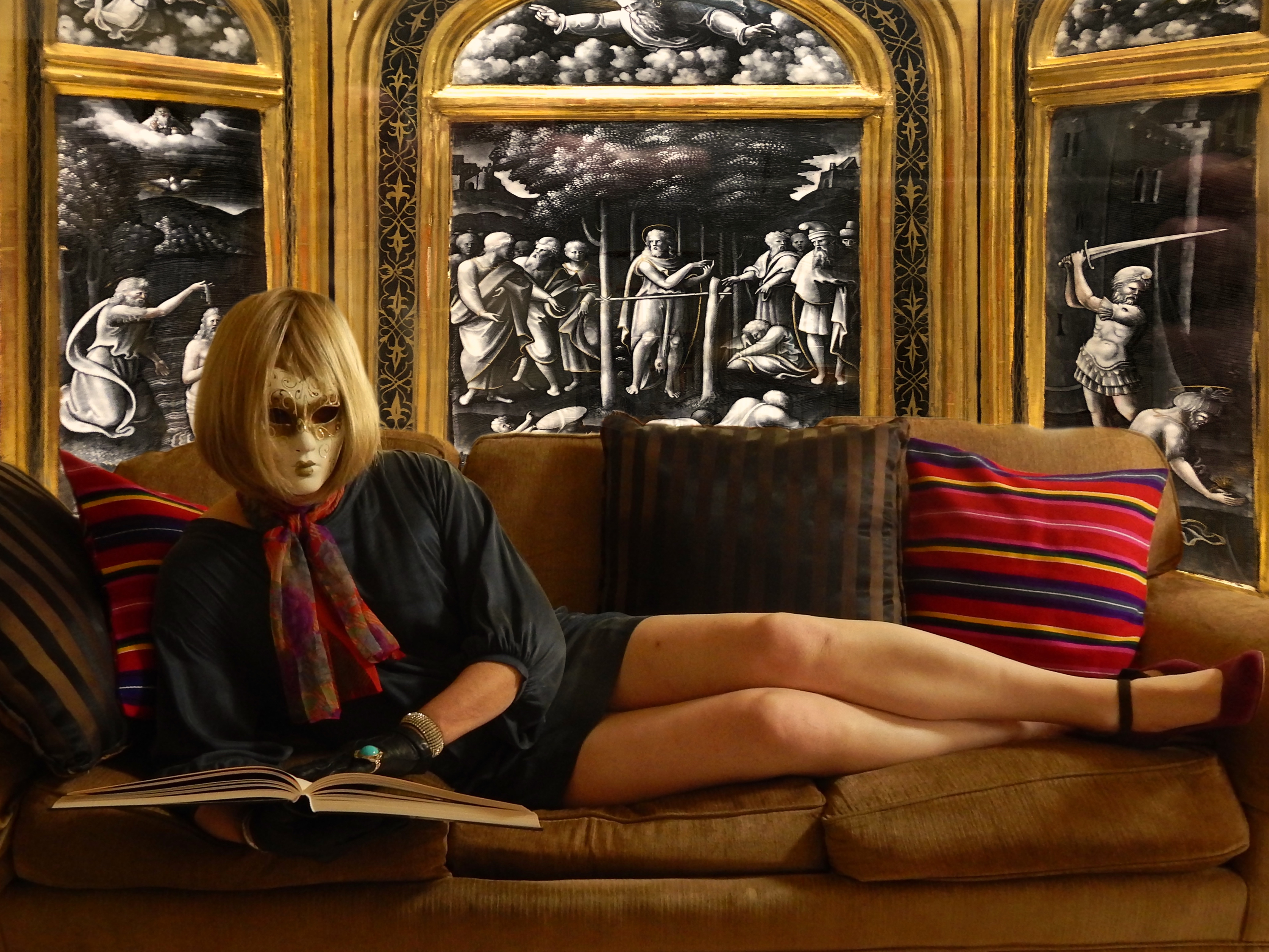 “The Masks of Femininity” is a photo project by photographers Heili Einasto and Karl Toepfer that describes the feminization of identities in relation to masks, costumes, poses, camera angles, settings, and lighting conditions. The project proposes that feminization is a fundamentally theatrical process. Femininity from this perspective thus manifests itself in relation to an image of physical transformation rather than in relation to observable qualities of women in reality. This means that femininity is not innate to bodies, but if that is the case, then it also means that it is very difficult and perhaps impossible to discern “authentic” or absolute femininity. Femininity is a “mask.” The project employs models from each sex. The models wear different masks and costumes; they are photographed wearing the masks and costumes in different poses and in different environments or “moods.” For many images, the goal is to show how a single variable, such as a prop or gesture or camera angle amplifies or diminishes feminization. Sometimes the aim of the photographers is to show how the slightest shift in a pose intensifies the aura of femininity for often complex reasons. In developing the project, the photographers have directed the models and fashioned the performance environment according to conventional signifiers of femininity (e.g., dresses, jewelry, long hair, high-heeled shoes, “voluptuous” poses), but the dominant signifier is the mask. It is the mask that calls attention to the conventions and releases them from their “natural” placement within consciousness and establishes their theatrical strangeness. On some occasions, the photographers employ a silver mask of uncertain sexual identity, and this mask produces a unique layer of ambiguity in the image that renders the conventional signifiers of femininity even more mysterious. The photographers sometimes also incorporate signifiers of hyper-masculinity into the images, such as a bishop’s mitre or military hats, to show how such signifiers actually intensify the feminization of the body. In some cases, it is difficult to discern the difference between male and female bodies; in other cases, where the viewer can identify the model as male, the image works to redefine masculinity in a positive way—that is, masculinity is as much about playing with sexual identity as it is about stabilizing sexual identity. But in this regard, “The Masks of Femininity” is not about drag performance; it is not about male appropriation of femininity or drag’s enthusiasm for the exaggeration or distortion of feminine signifiers. Rather, feminization is about the pleasure of intensifying the sexual ambiguity of bodies and identities. The larger goal of the project, then, is to show how a specific, theatrical process of feminization in image-making leads to heightened gender ambiguity, and this ambiguity is the foundation of greater condition of emotional and cognitive freedom. However, this project links “feminization” to the selection of masks that make bodies look younger than their “real” faces, for the “real” face so often masks an “other,” younger identity within the body.