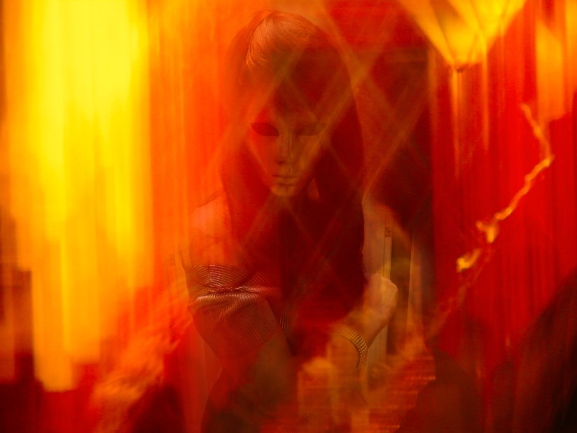 This series features images in which an abstract, often mundane photo serves as a filter to convey the effect of seeing masked figures through a veil.